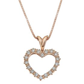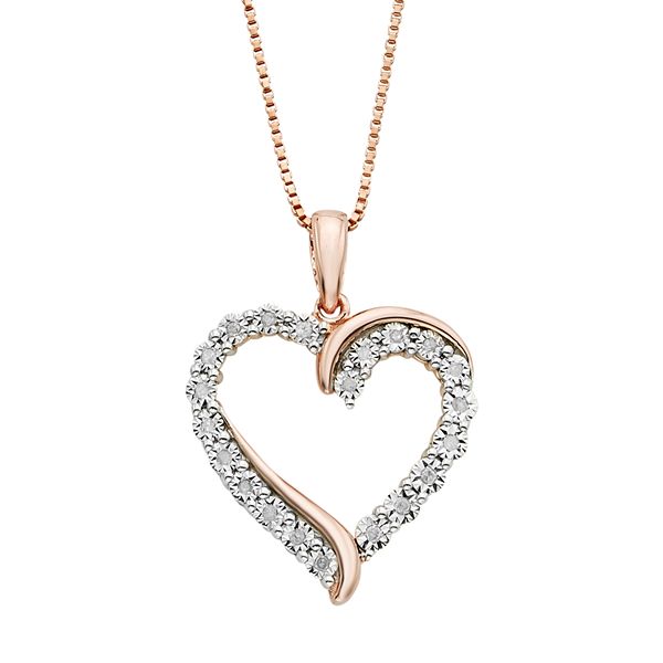 18k Rose Gold Over Silver 1 4 Carat T W Diamond Heart Pendant