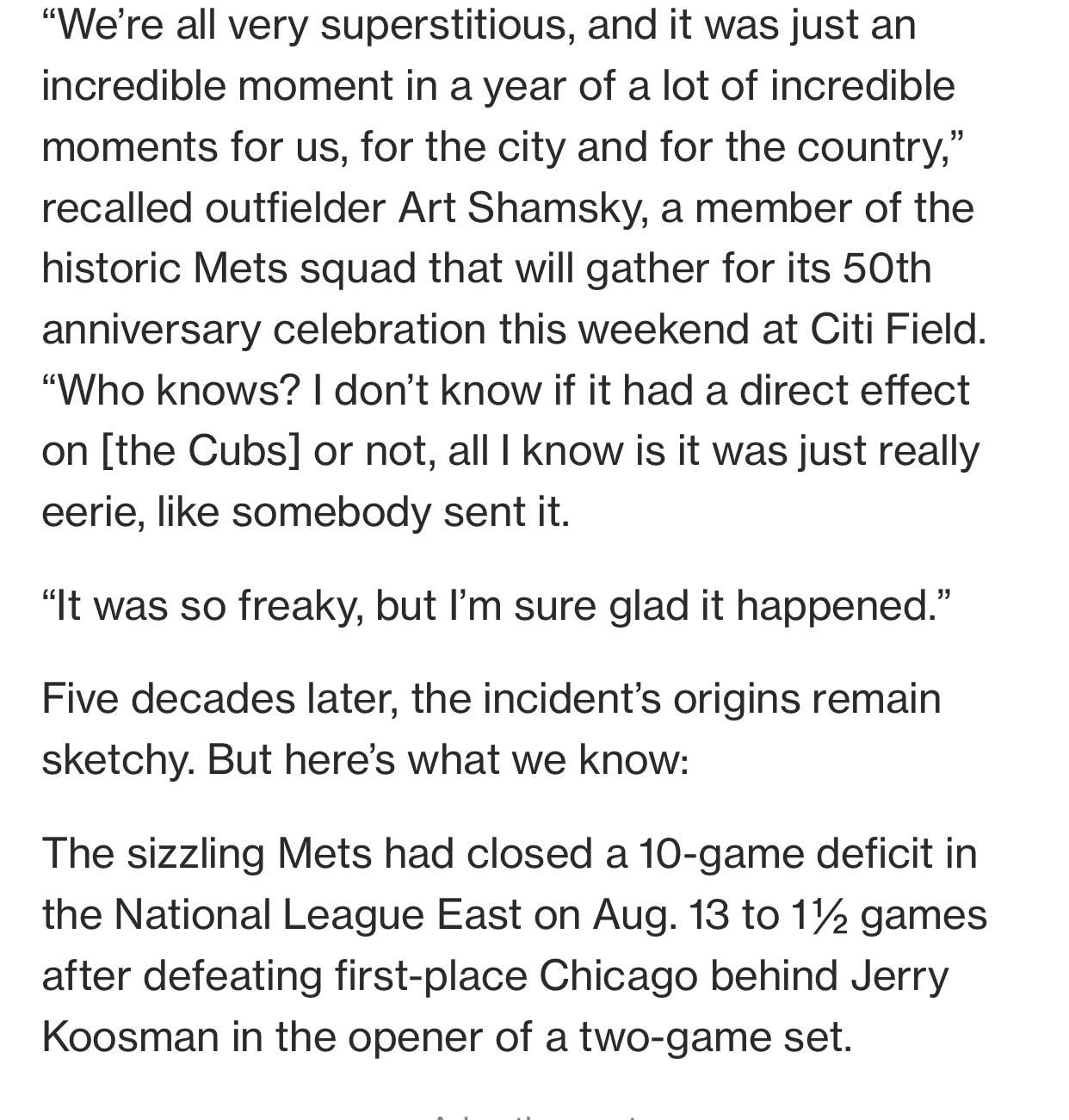 50 Years After The Black Cat Game Mets Need More Luck Vs Cubs