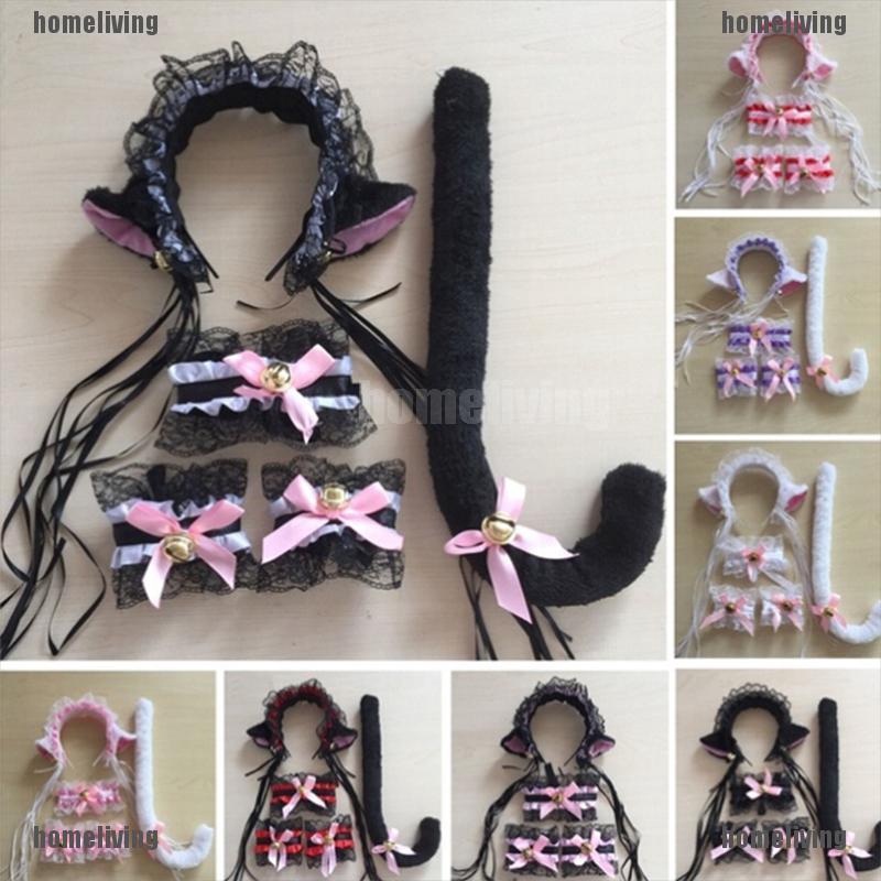 Womens Accessories Cute Cat Ear Hairband Anime Cosplay Party Costume With Tail Chrome Metal Plug Set Wish