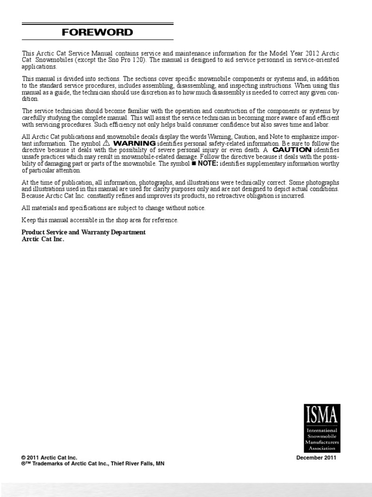 Arctic Cat 2005 Snowmobile Service Manual All Models Gasoline