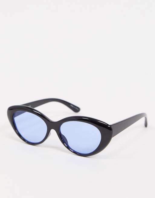 Pieces Cat Eye Sunglasses With Blue Tint Lenses In Black Asos