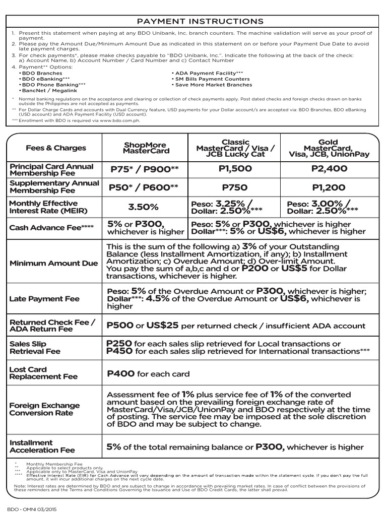 Credit Card Comparison Bdo Unibank Inc