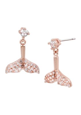 Betsey Johnson Rose Gold Tone Crystal Mermaid Tail Drop Earrings