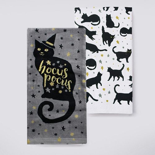 Halloween Kitchen Towels For Cat Lovers Meow As Fluff