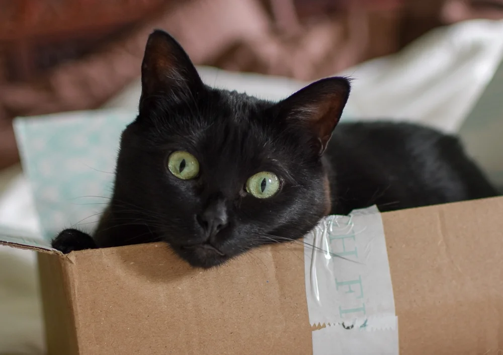 Black Cat In Tiny Box Greeting Card By Saradaboru Redbubble