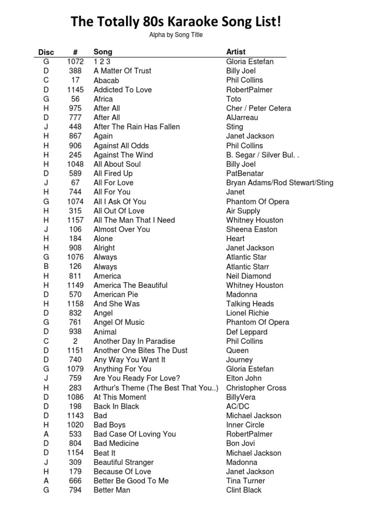 Karaoke Song Book By Title Click Here Bs Diva Light Year Music