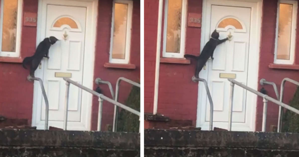A Black Cat Is Caught Brilliantly Using A Home S Door Knocker