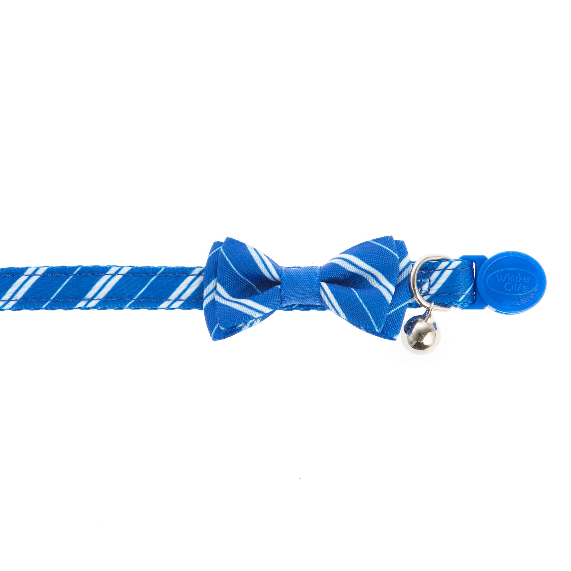 Blue Plaid Dog And Cat Collar With Bow Tie Personal Custom Pet