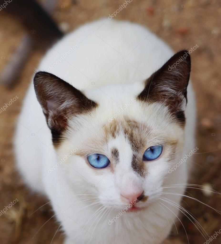 Portrait Of A Brown White Cat With Blue Eyes Free Image