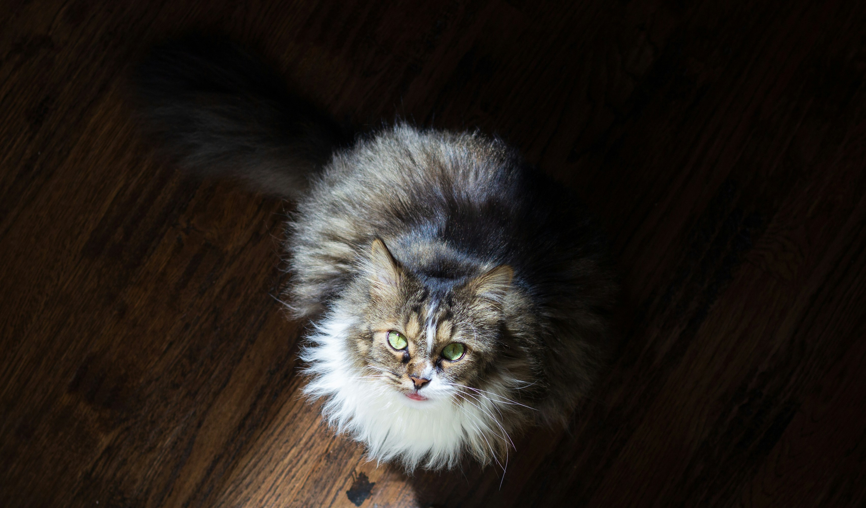 Brown And White Tabby Long Haired Cat Of Livestock Siberian