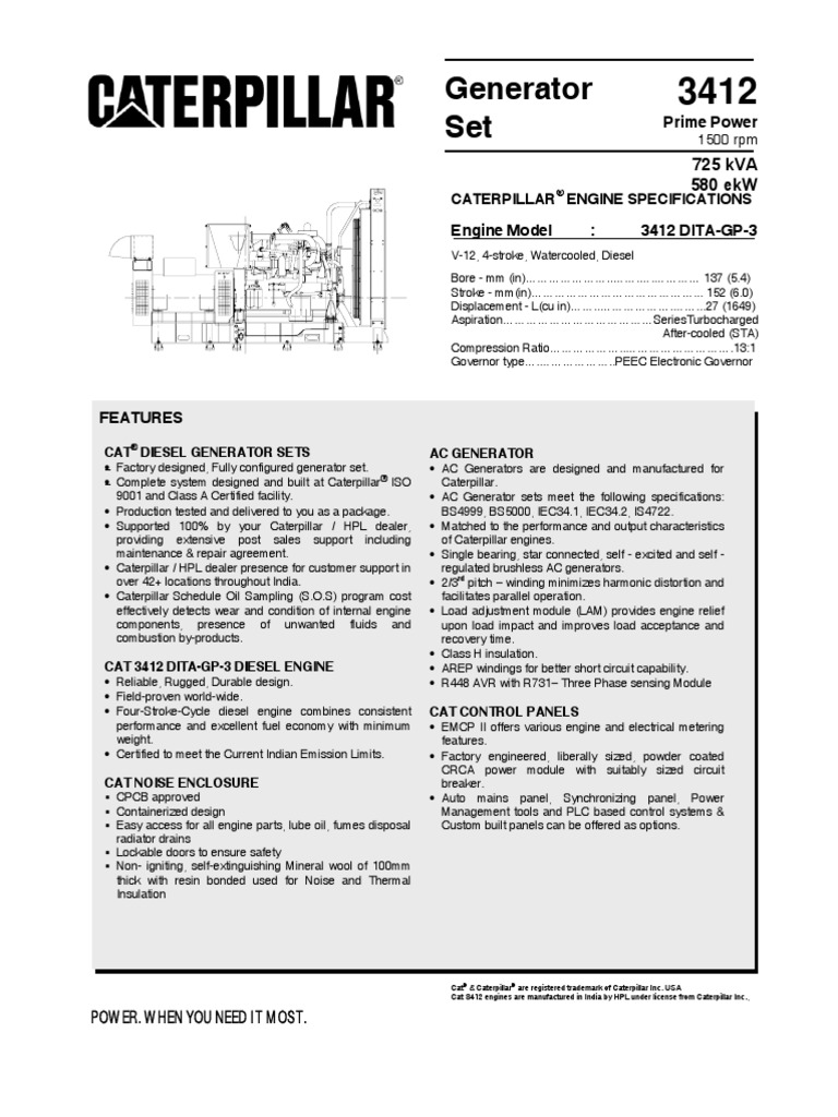 Cat 3408 And Cat 3412 Manuals Spec Sheets