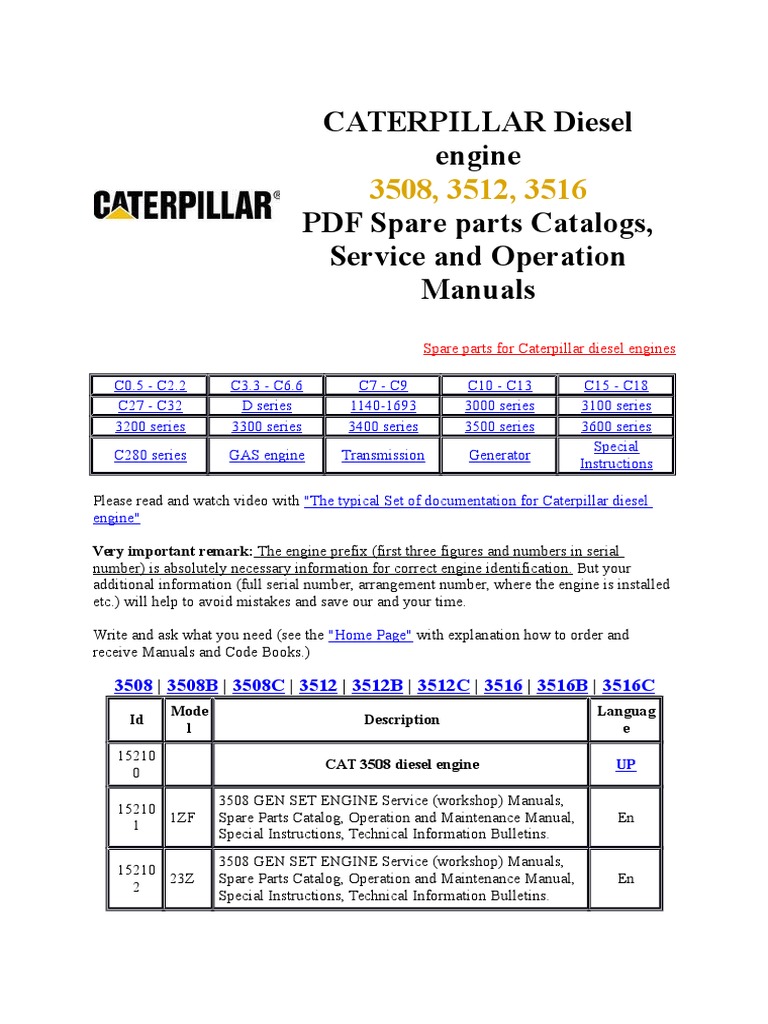 Caterpillar Generator Parts Manual 3508 Chainloadob