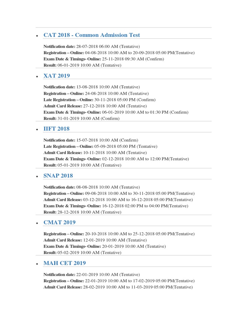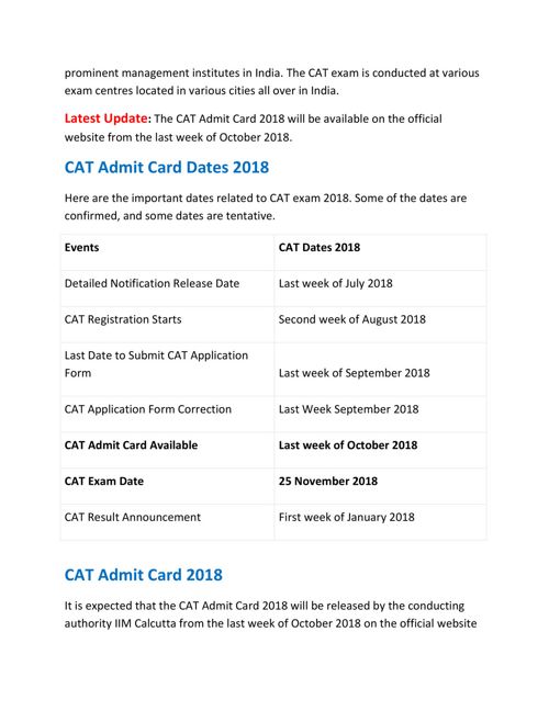 Cat Admit Card 2018 Hall Ticket Dates How To Download