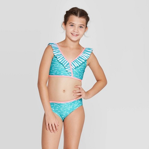 Girls Ruffle Shark Bikini Swimsuit Set Cat Jack Aqua S Target