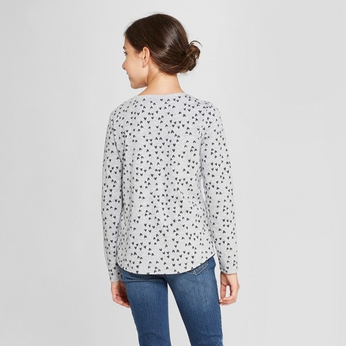 Girls Heart Long Sleeve T Shirt Cat Jack Heather Gray L Target
