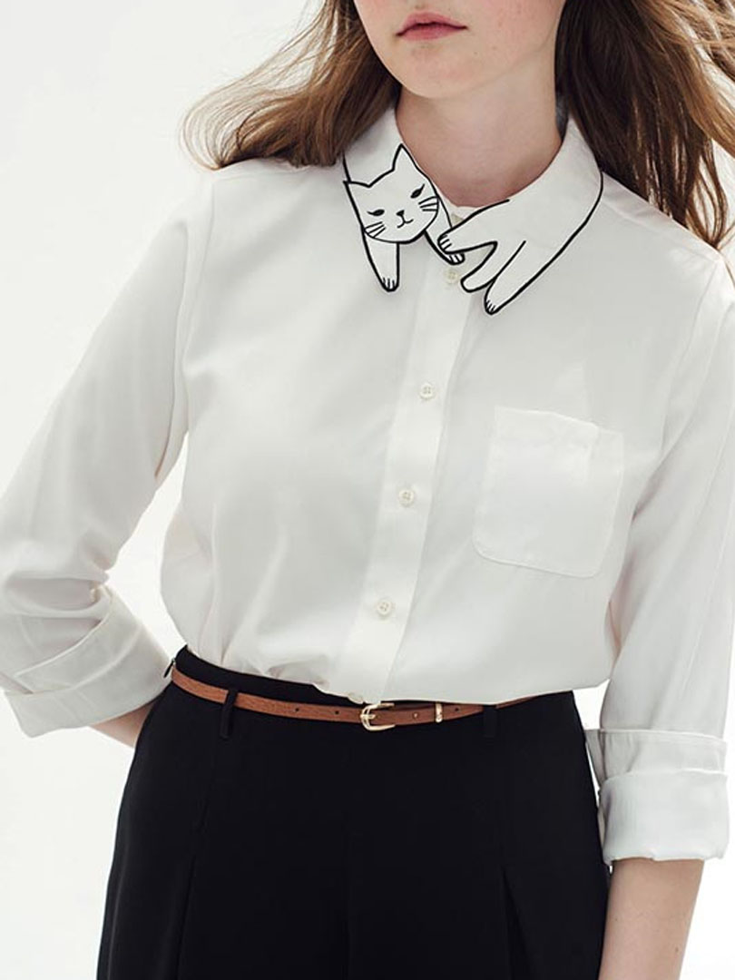 Girls Cat Collar Button Up Shirt Shein Usa
