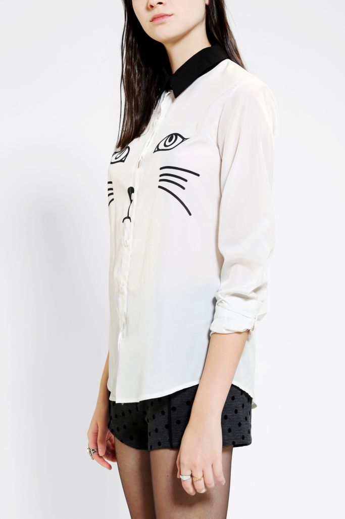 Drop Dead Tops Seethrough Cat Button Up Shirt Poshmark
