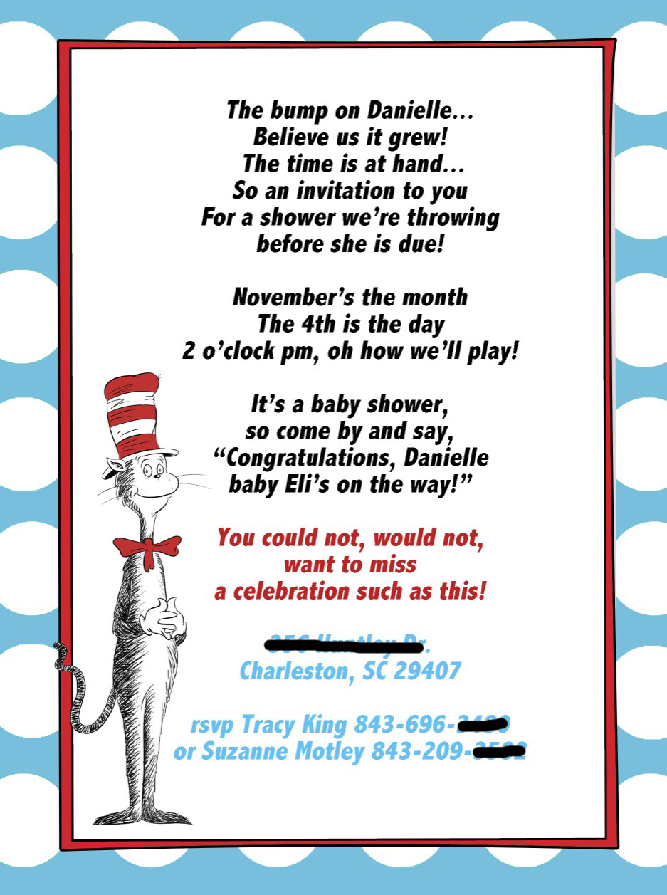 Dr Seuss Baby Shower Invitation Cat In The Hat Baby Shower Invites