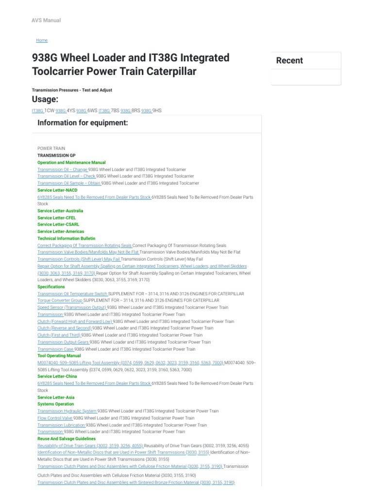 Cat Caterpillar 938g It38g Wheel Loader Repair Shop Service Manual