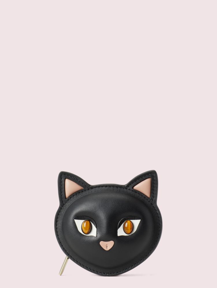 Kate Spade Novelty Cat Leather Coin Purse In Black Modesens