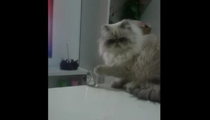 Cat Shamelessly Knocks Glass Off Table After Being Told No