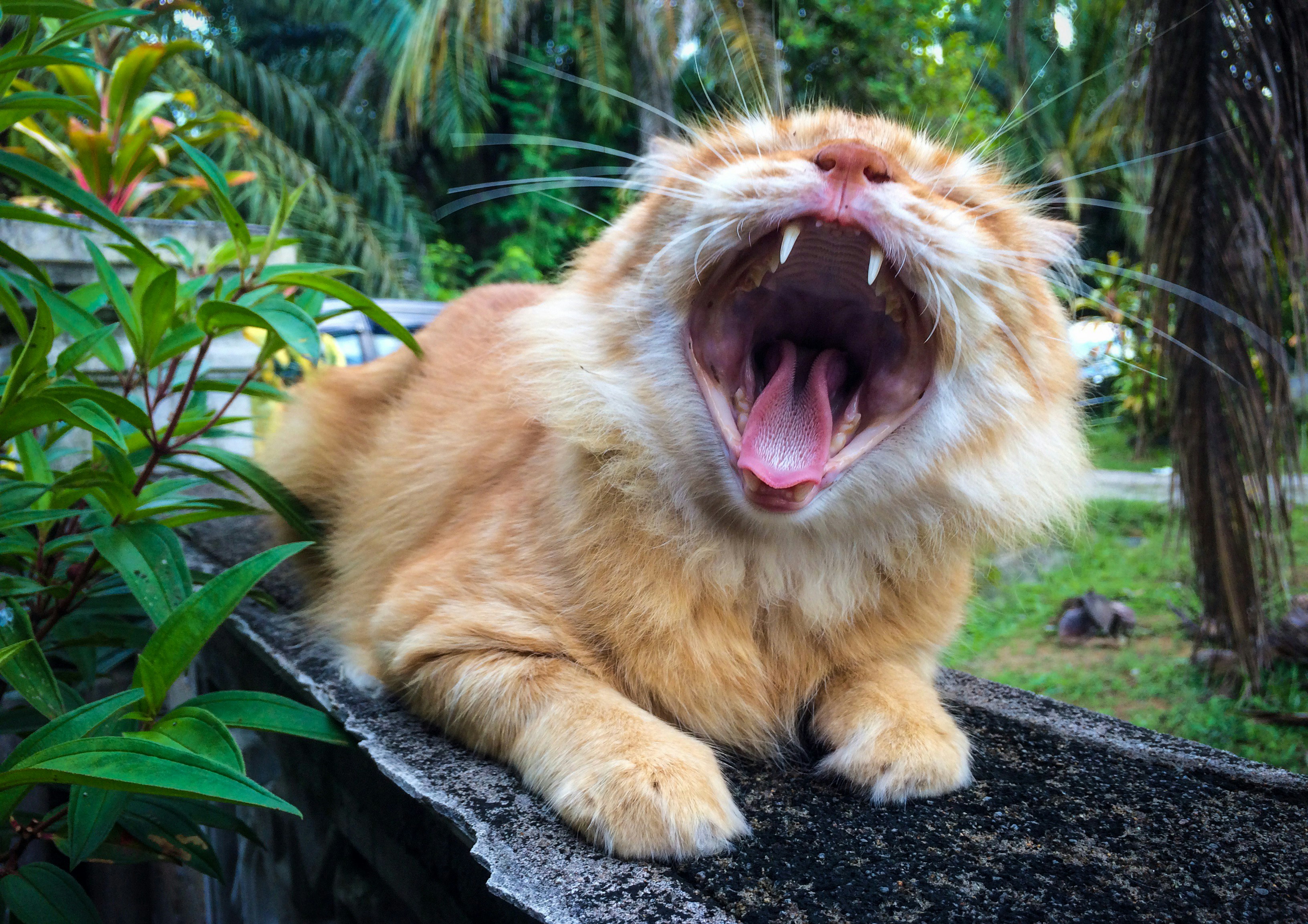 Orange Domestic Cat Yawning Wide Mouth Open Showing Teeth And Tongue Stock Photo 333c21cc F188 41f8 Beae 05b26bb758f6