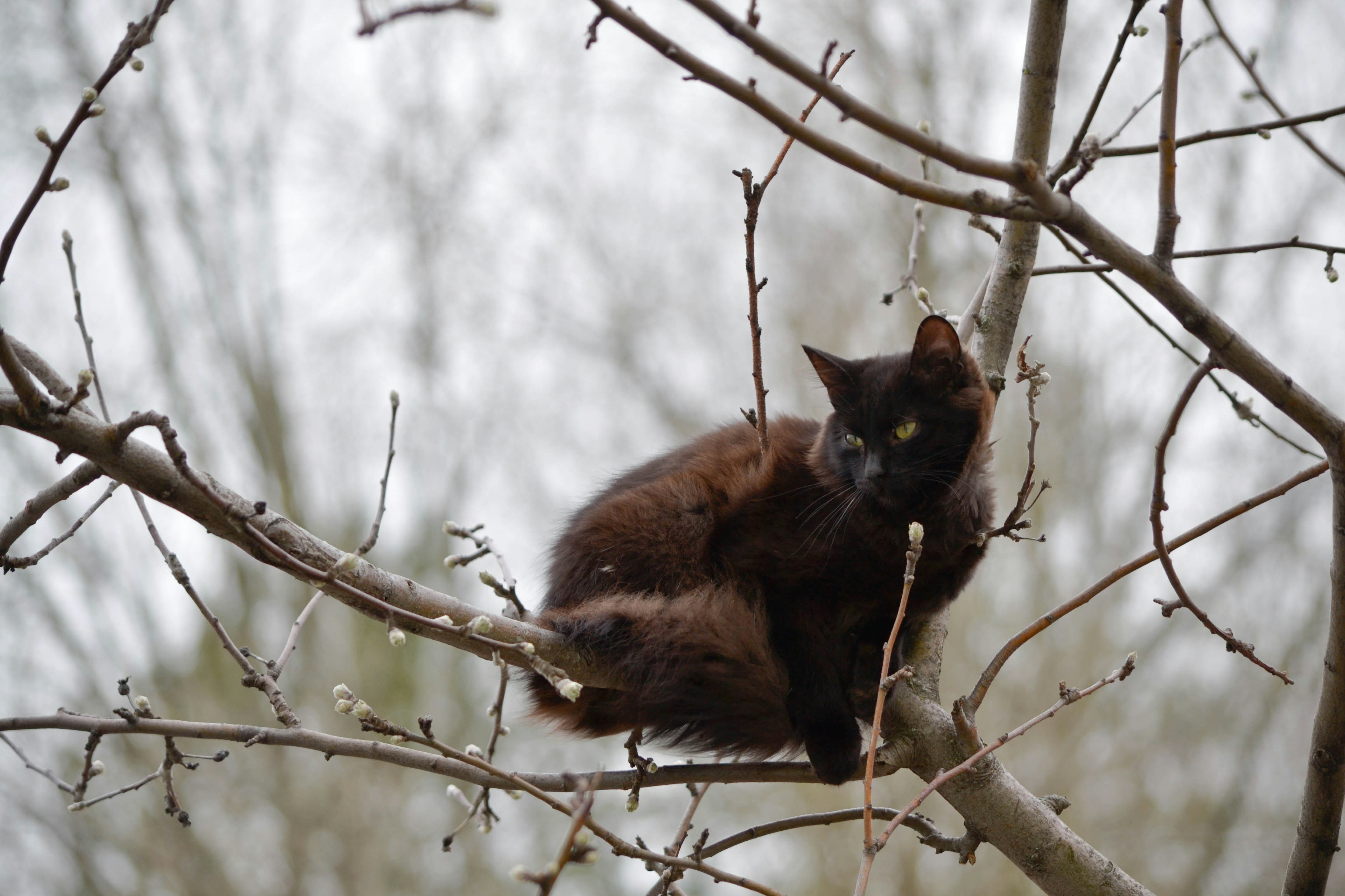 Grey Cat Lying On Tree Branch Photo Free Animal Image On Unsplash