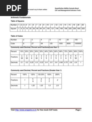 50 Key Topics And Formulas For Cat Preprations Mba Preparation