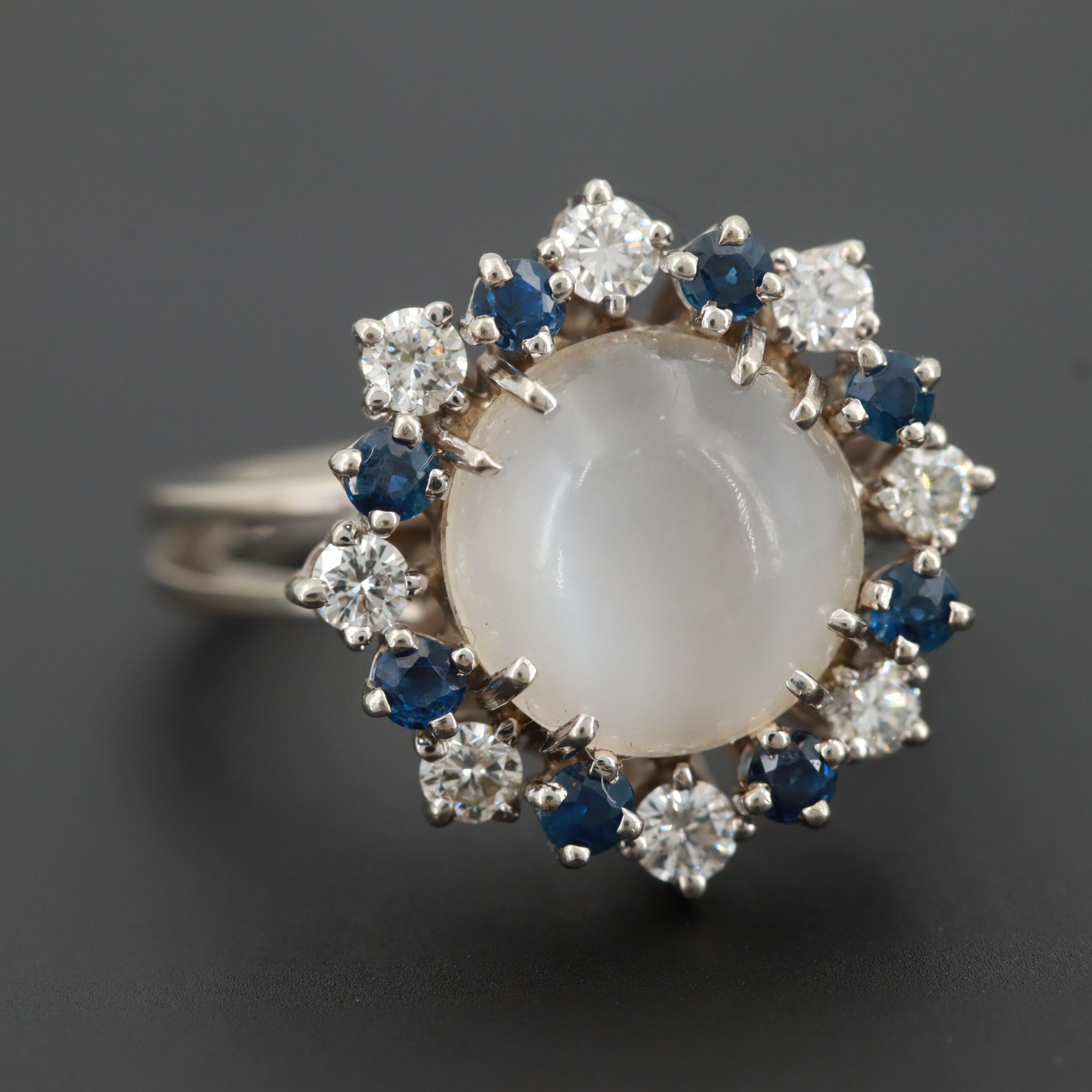 Cat S Eye Moonstone Diamond Sapphire Platinum Ring Estate