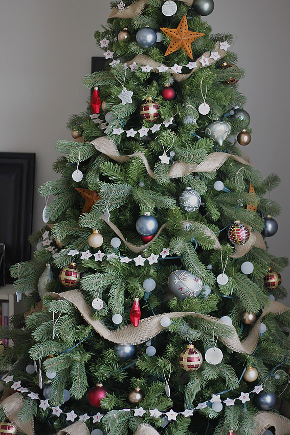 Curious Cat Hiding Behind The Christmas Tree Stock Photo Picture