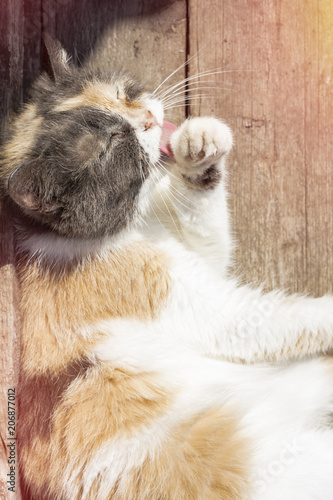 Thai Cat Licking Their Paws In Garden Buy This Stock Photo And