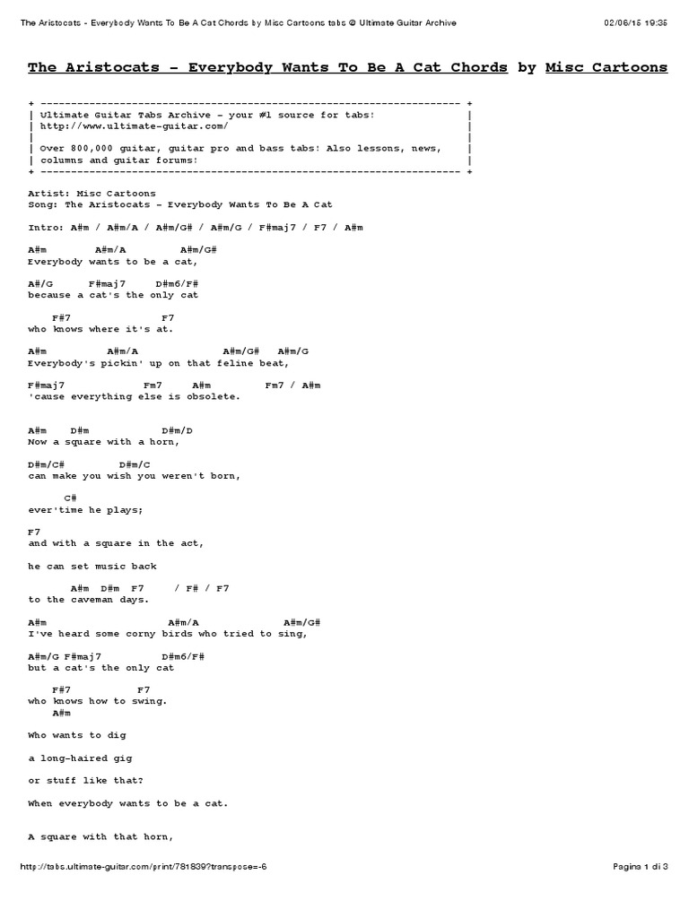 The Aristocats Everybody Wants To Be A Cat Chords By Misc