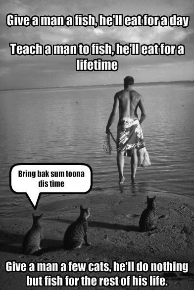 Science Cat Says If You Give A Man A Fish He Ll Eat For A Day