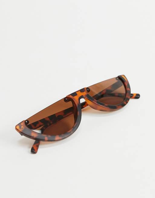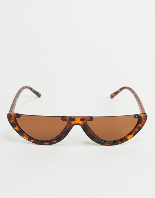 Bold Color Trim Flat Top Futuristic Semi Rimless Cat Eye Shield