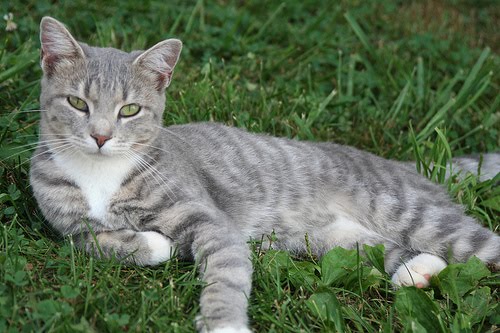 Gray And White Domestic Short Haired Outdoor Cat Ringed Tail Cat