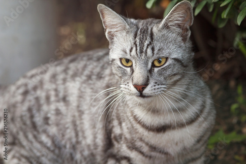 Striped Grey Cat With A Wonderful Yellow Eyes Stock Photo Image