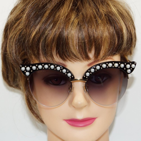 Gucci Cat Eye Metal Sunglasses With Pearls Gold Pearls Gucci