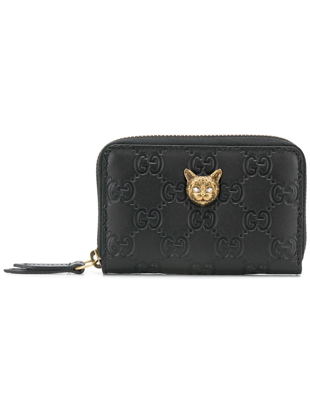 Gucci signature card case wallet with cat. The matching gold wrap around zipper opens the wallet to a partitioned smooth pink leather interior. A zip around card case made in heat debossed gucci signature leather with a defined print and firm texture. Enjoy complimentary delivery gift wrapping. Gucci skip to main search results.