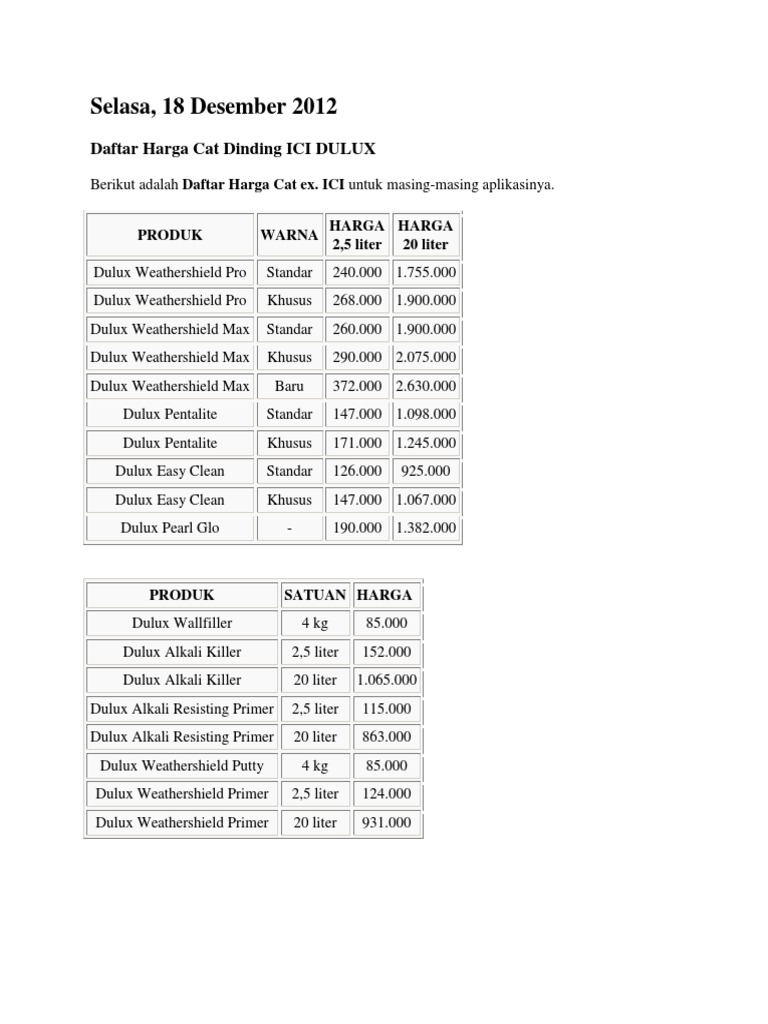 Daftar Harga Cat Tembok Dulux Semua Katalog Terbaru 2020
