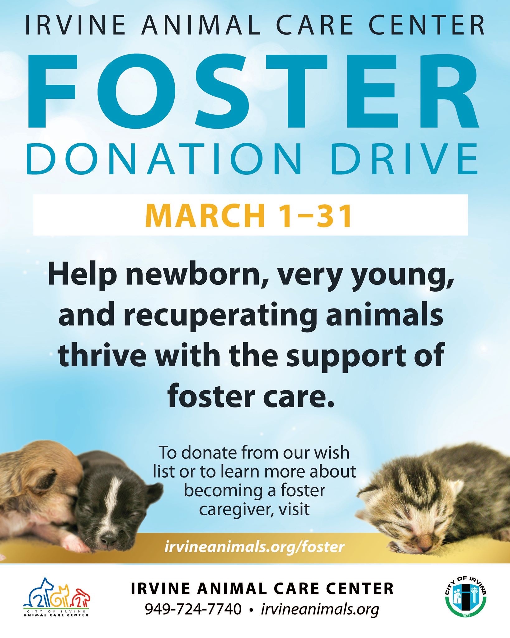 Join Irvine Animal Care Center S Foster Donation Drive And Kitten