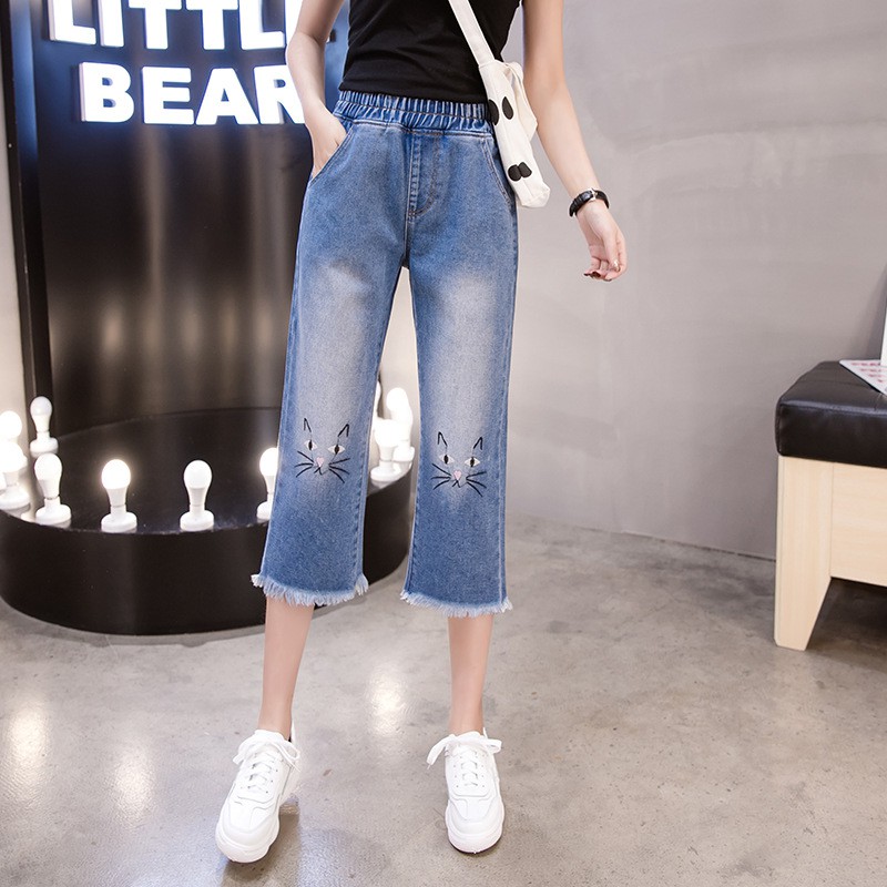 Jeans Monk I Jeans Cat Embroidery Jeans Cat Pants High Waisted