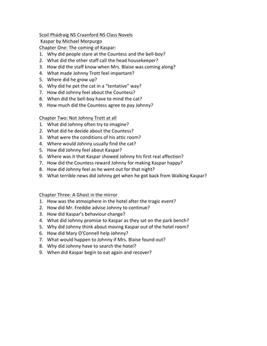 Kaspar Prince Of Cats Chapter By Chapter Questions By Tim Ryan Tpt