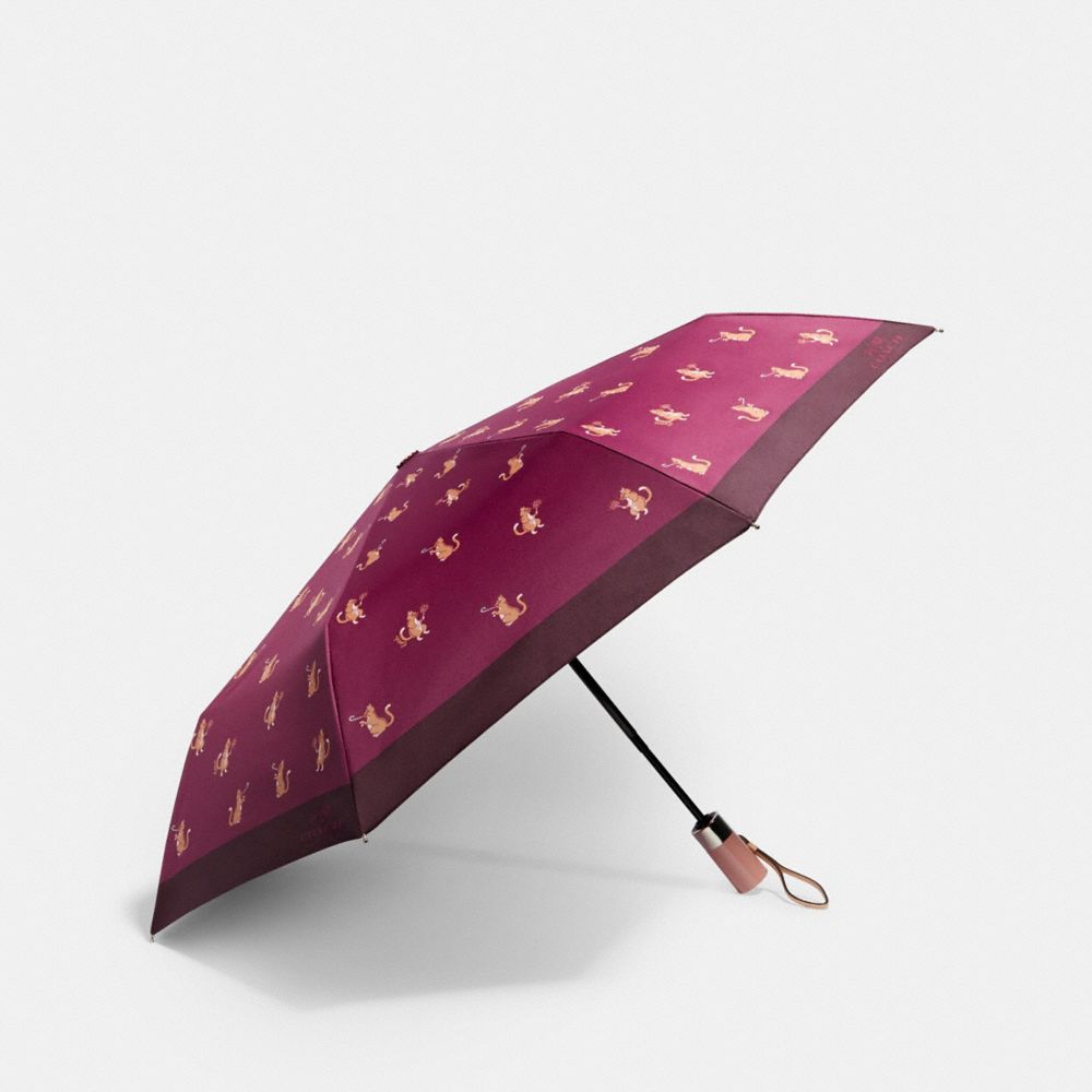 Coach F84680 Umbrella In Signature Party Cat Print Chestnut