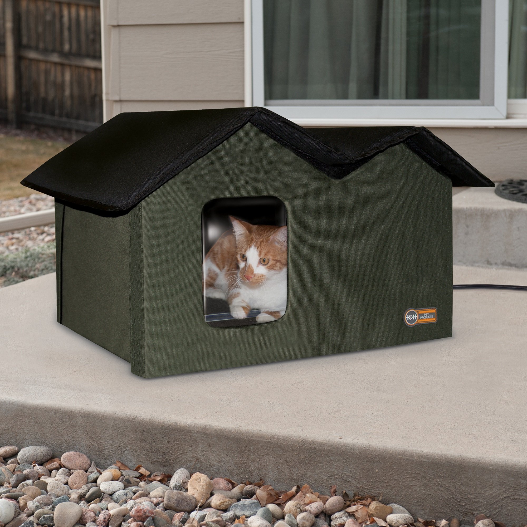 K H Pet Products Outdoor Heated Kitty House Cat Shelter Olive