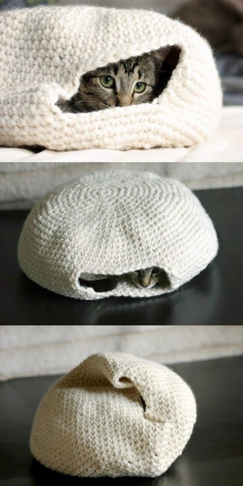 Extreme Knitting Cat Bed Alas There S No Pattern In The Link But You Could Follow A Pattern For A Kn Extreme Knitting Knitting Patterns For Dogs Knitted Cat
