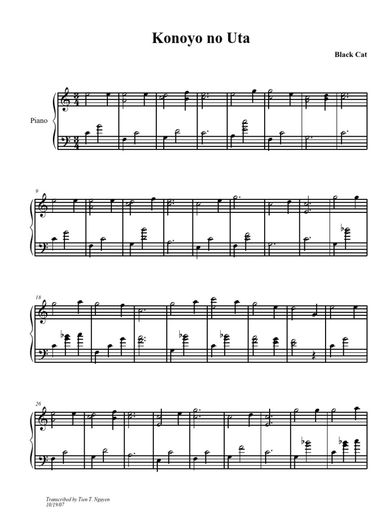 Konoyo No Uta Black Cat Episode Free Piano Sheet Music Piano Chords