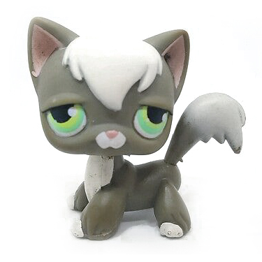 Littlest Pet Shop 483 Gray Short Hair Kitty Cat Kitten With Fancy