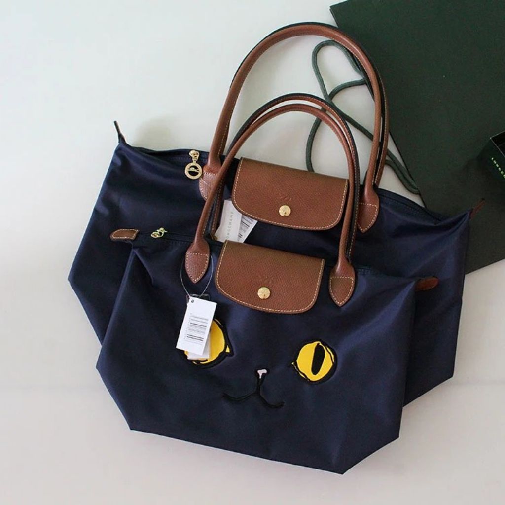 Authentic Longchamp Le Pliage Small Miaou Cat Tote Bag Navy In