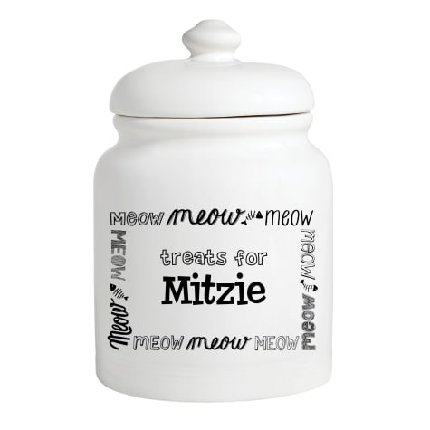 Meowing cat treat jar. 156 x 11 x 11cm. Holds 3 cups of treats for cats kittens or pets store your kittys favorite snack in a beautiful ceramic treat jar with fish shaped lid handle rubber gasket keeps jar airtight and treats fresh. Personalized cat treat jar cat treat container meow cat canister maxstudiogifts. It also prevents chipping and breakage all products.