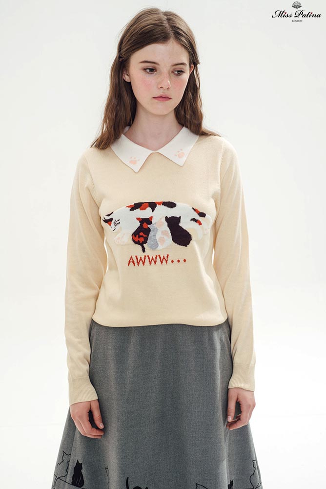 Combine our love of british heritage and cats this limited edition darling white shirt features an embroidered cat and the union jack on the collar its an updated version of classic love cat shirt not only for cat lovers but also for briton lovers. Mystical kitty blouse 5900. Featuring miss patina exclusive puffy clouds and angel cats motif which gives you the warmest and comfiest feeling finished by a classic turtleneck and ribbed trimmings. Wear with ladylike loose curls falling about your shoulders to maintain your girlish charm.